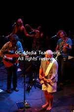 | American singer and song writer James William (R-bottom) known as "Jimmy" Buffett performs with his band in Paris, France on September 26, 2009. |