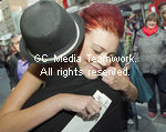 | The multiple award wining documentary "65_RedRoses" about Eva Markvoot, (shown comforting a filmgoer moved to tears during the film's opening night at Empire Theaters at the Vancouver International Film Festival, Vancouver, British Columbia, October 10, 2009) chronicling her fight with cystic fibroses and double lung transplant will make its world broadcast premiere tonight on the CBC's "The Passionate Eye", November 16, 2009. |