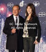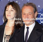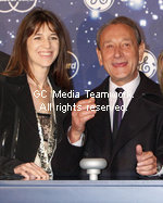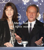 | Paris Mayor Bertrand Delanoe and actress Charlotte Gainsbourg arrive at the ceremony to illuminate the Avenue des Champs-Elysees with holiday decorations in Paris on November 23, 2009. The ceremony lit more than 1 million lights in 400 trees and covered 2 kilometers (1.2 miles) of the avenue. |