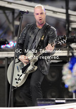 | Daughtry performs at Cowboys Stadium during halftime of the Dallas Cowboys and Oakland Raiders game November 26, 2009 in Arlington, Texas. The performance helped kick off the Salvation Army's annual Red Kettle fund raising drive. UPI/Ian Halperin |
