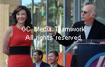 | Actress Mary Steenburgen reacts to comments from actor Larry David during an unveiling ceremony honoring her with the 2,395th star on the Hollywood Walk of Fame in Los Angeles on December 16, 2009. |