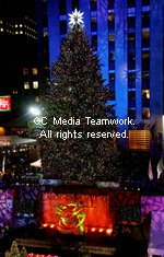 | The Rockefeller Center Christmas is lit up during the tree lighting ceremony on December 2, 2009 in New York. The 76-foot tall Norwegian pine is illuminated by 30,000 LED lights and will be viewed by thousands over the course of the next month. |