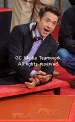 | Actor Robert Downey Jr. signs his name in wet cement in the forecourt of Grauman's Chinese Theatre in Los Angeles on December 7, 2009. |
