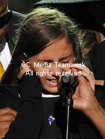 | Michael Jackson''s daughter Paris Michael Katherine becomes emotional as she speaks during the memorial service for Michael Jackson at Staples Center in Los Angeles on July 7, 2009. The "King of Pop" died in Los Angeles on June 25 at age 50. UPI/Gabriel Bouys/Pool |