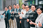 | ■江旻憓(右四)在信和集团主席黄永光(左四)及旅议会主席谭光舜(右叁)等人陪同下宣布参选旅游界。 (已申请放弃加国护照 多名重量级人物站台 江旻憓「亮剑」报名出战旅游界) |