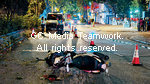 | ■肇事电单车横?路中,车身严重损毁。(撞壆猛撼树人车分离 外卖铁骑重伤不治) |
