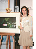 ■朱玲玲展出的作品以大自然為主,是日她与其中一幅作品合照。
