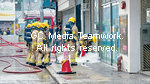 ■消防员凿开地面,以灭火筒将白烟扑灭。(护老院冒白烟 消防员凿石屎灭火) |