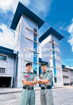 ■枪械训练科教官、警长陈家廉(左)与梁业成(右)强调,武力使用必须依法、安全和克制。(武力使用强调依法安全克制 植根学员DNA 枪械训练科教官:是一个责任的承担) |