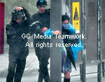 「樺加沙」风力猛烈,有市民要揽?灯柱才能站隐。(掛10号波时间史上次长 逾百市民受伤 「樺加沙」蹂躪全港 海啸式巨浪袭民居) |