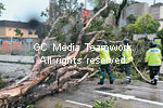 九龙塘窝打老道有大树倒塌,警员到场处理。(掛10号波时间史上次长 逾百市民受伤 「樺加沙」蹂躪全港 海啸式巨浪袭民居) |