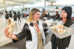 ■机管局职员昨继续主动為滞留旅客提供饼乾、棉花糖及毛毯等物资。(机场今復飞料逾千航班升降 提醒旅客预足时间出门) |