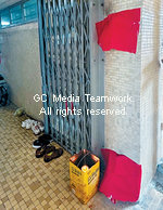 ■患精神病男子堕楼身亡后,家人在寓所门外燃点白蜡烛。(压毁煤气喉 邻近安老院响疏散警报 走廊乱刀 伤印佣病汉越栏堕亡) |