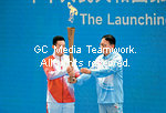 | ■署理行政长官陈国基将火炬交给第一棒火炬手黄镇廷。(港路线如巡游体现盛事之都 陈国基:创举展湾区优势 全运四城传火炬 政商体坛名将参与 ) |