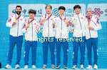 | ■香港男子花剑队大热夺金。左起為主教练格连(Greg Koenig)、吴诺弘、张家朗、梁千雨、蔡俊彦和教练Maurizio Zomparelli。(张家朗復仇成功 蔡俊彦感谢观眾打气声 最强出鞘 花剑男团夺港队第9金) |
