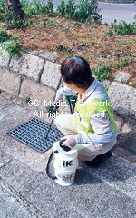 | ■食环署承办商人员在积水地方施放蚊油或杀幼虫剂。(青衣自然径加强灭蚊 出动机械狗提升成效) |