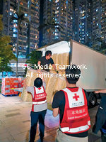 | ■送200张床褥到庇护中心。(香港红十字会 筹得善款逾7000万元) |